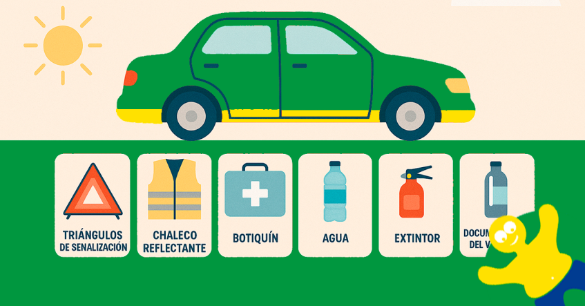 - Chaleco reflectante: debe estar accesible desde el interior del vehículo.